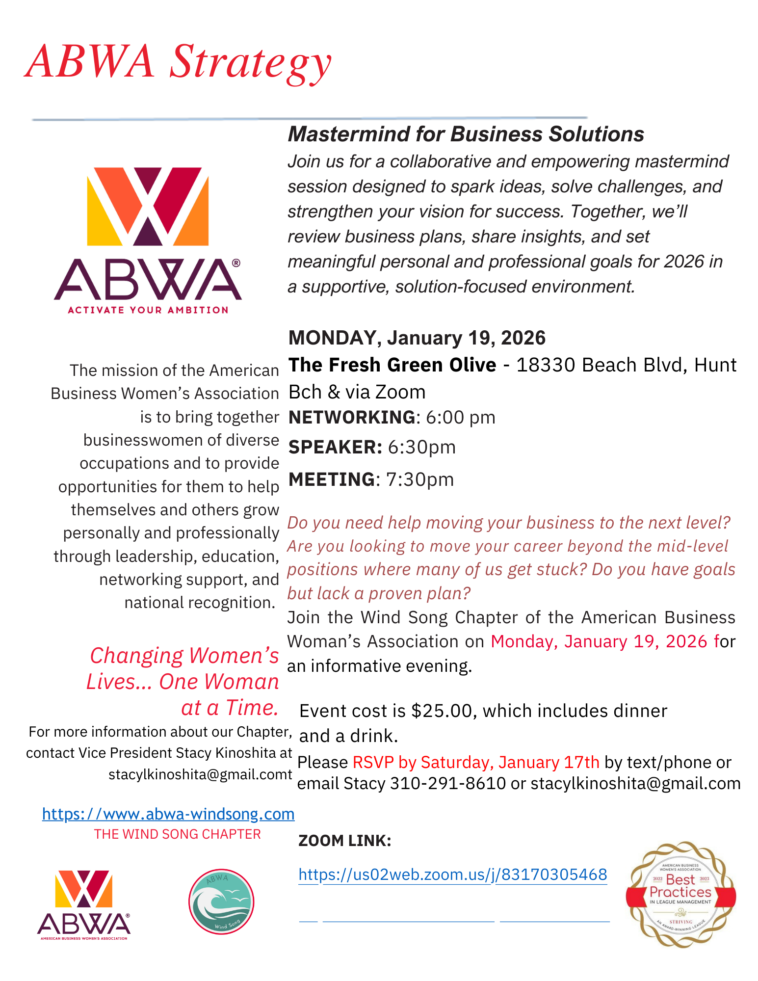 RSVP to Stacy Kinoshita at stacylkinoshita@ gmail.com or windsongchapterabwa@gmail.com